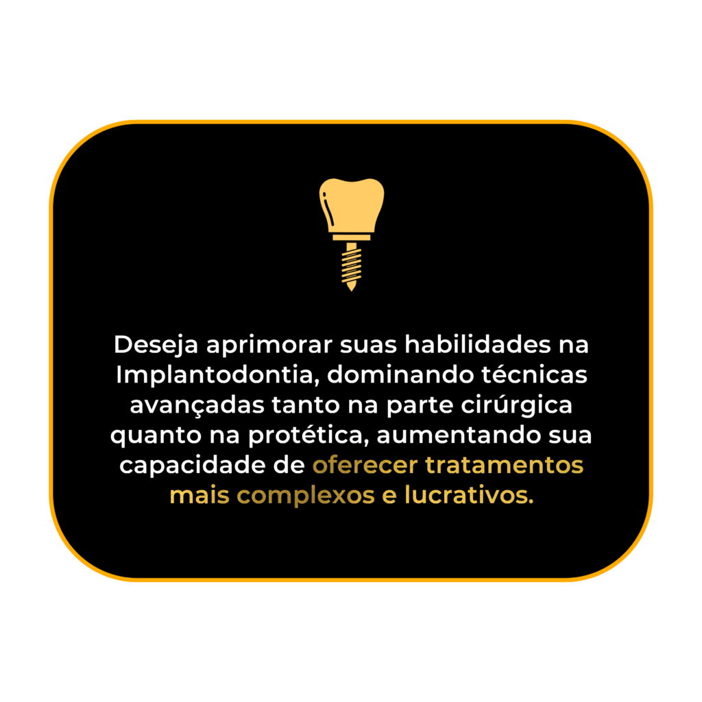 Além disso, o aluno terá a prática clínica cirúrgica de implantes.